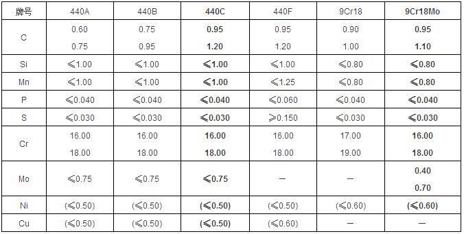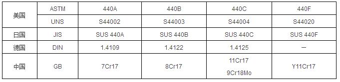 美標中440不銹鋼有四個牌號。440A、440B、440C的含碳量依次升高;440F(ASTM A582)則在440C的基礎上加大S的含量,是一種易切削鋼種。