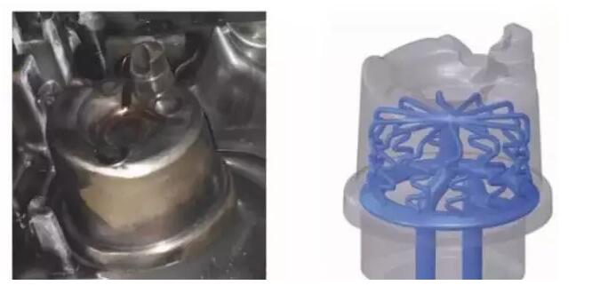 壓鑄模冷卻系統(tǒng)在德國同樣秉承技術(shù)為驅(qū)動、追求穩(wěn)定可靠的理念,冷卻系統(tǒng)設(shè)計十分先進(jìn),為了生產(chǎn)過程中高效和穩(wěn)定前期會花大量的時間去思考。德國壓鑄行業(yè)在粉末激光3D打印隨形冷卻鑲塊的應(yīng)用也早已實現(xiàn)大批量生產(chǎn),而且壽命和普通加工成型的鑲件不相上下。