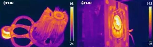 壓鑄生產(chǎn)過程中熔化的鋁液通過料管高速高壓進(jìn)入模具,鋁液在凝固過程中釋放的結(jié)晶熱(潛熱,固化熱)被壓鑄模具所吸收,使得鋁液冷卻和固化,鋁液在模具中漸漸冷卻直到形成一個零件,壓鑄模具通過輻射,對流,熱傳導(dǎo)給環(huán)境和壓鑄機提供熱量,其中模具內(nèi)部的熱量無法在短時間內(nèi)被輻射,對流,熱傳導(dǎo)所帶走,所以模具內(nèi)部熱量輸送出去要通過一定量的熱傳介質(zhì)(水和熱傳油)