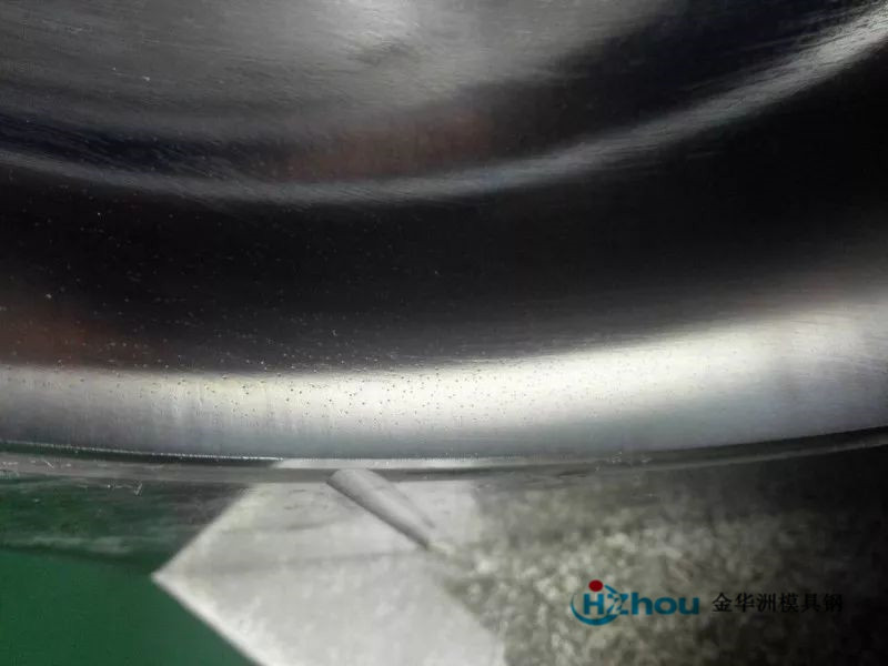 總結(jié):各個(gè)階段發(fā)現(xiàn)的點(diǎn)主要以下幾種成因:原材氣孔或者縮孔、燒焊、夾雜物引起、加工過(guò)程中腐蝕(電腐蝕、化學(xué)腐蝕等)或者拋光過(guò)度。選用更好的材質(zhì),合理的加工工藝,在加工過(guò)程中碰到各種各樣的點(diǎn)不用驚慌,準(zhǔn)確的分辨點(diǎn)產(chǎn)生的原因即可以選擇合理的解決方案——金華洲高光模具鋼材是通過(guò)保護(hù)氣氛電渣重熔,夾雜物含量真是少的不能再少。