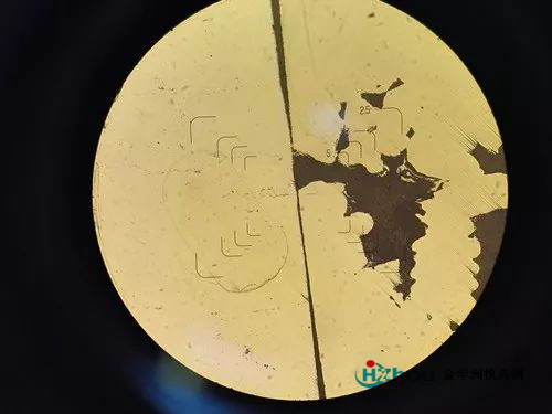 二、模具線切割加工完發(fā)現(xiàn)表面約有30個(gè)小點(diǎn),較大孔點(diǎn)直徑約為0.35mm,深度約為0.1mm,小點(diǎn)放大約100倍照片見右圖所示,孔點(diǎn)形狀較為規(guī)則,底部形狀較為平緩,明顯為加工過(guò)程中產(chǎn)生的腐蝕點(diǎn),建議降面處理。
