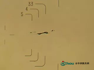 六、工件內(nèi)壁線切割之后發(fā)現(xiàn)孔洞,取樣分析之后此處有燒焊處理,實(shí)為燒焊沒燒好而產(chǎn)生的氣孔,孔洞形貌與原材形貌較為接近,都為不規(guī)則形貌,是否有燒焊處理可用專用的藥水經(jīng)輕微腐蝕即可分辨,右圖為100倍照片。
