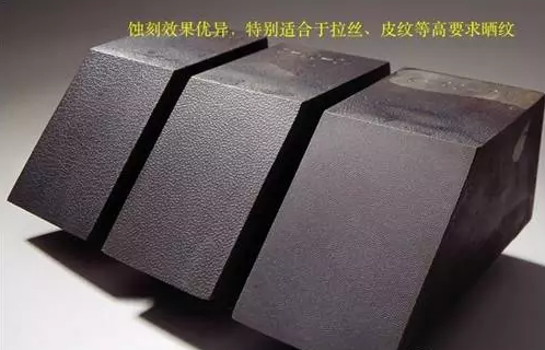 曬紋(蝕刻)效果是否好,與材料的純潔度和均勻性有很大的關系,TOOLOX的材料是具有超高純凈度的鋼材,P、S含量及非金屬氧化物含量非常低,獨特的熱處理工藝技術,晶粒細小并且均勻,碳化物析出少,能有像TOOLOX這么好的基體組織是非常難得的,因此做曬紋處理效果非常優(yōu)秀,特別適合拉絲等高要求的曬紋,其曬紋效果得到意大利權威部門的最高評價及認證:迄今為止最好的鋼材!