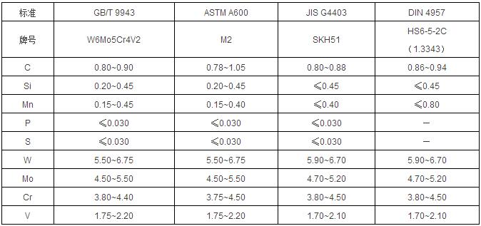 W6Mo5Cr4V2,俗稱6542或W6或M2,是鎢鉬系通用高速鋼的代表牌號。