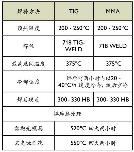 焊接之前進(jìn)行合適的預(yù)處理如預(yù)熱、坡口準(zhǔn)備,選擇正確的焊材和焊接工藝,可以獲得滿意的焊接效果。如果模具要進(jìn)行拋光或光蝕刻花,必須適用相應(yīng)成分的焊絲。