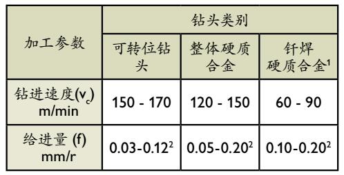 *適用于涂覆高速鋼的鉆頭;不推薦使用未涂覆高速鋼鉆頭