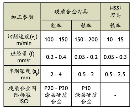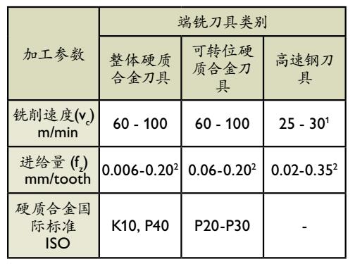 1 對于鍍膜高速鋼,Vc~45-50 m/min