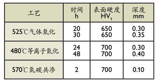 不同氮化處理時(shí)的硬度和氮化層深度如下所示
